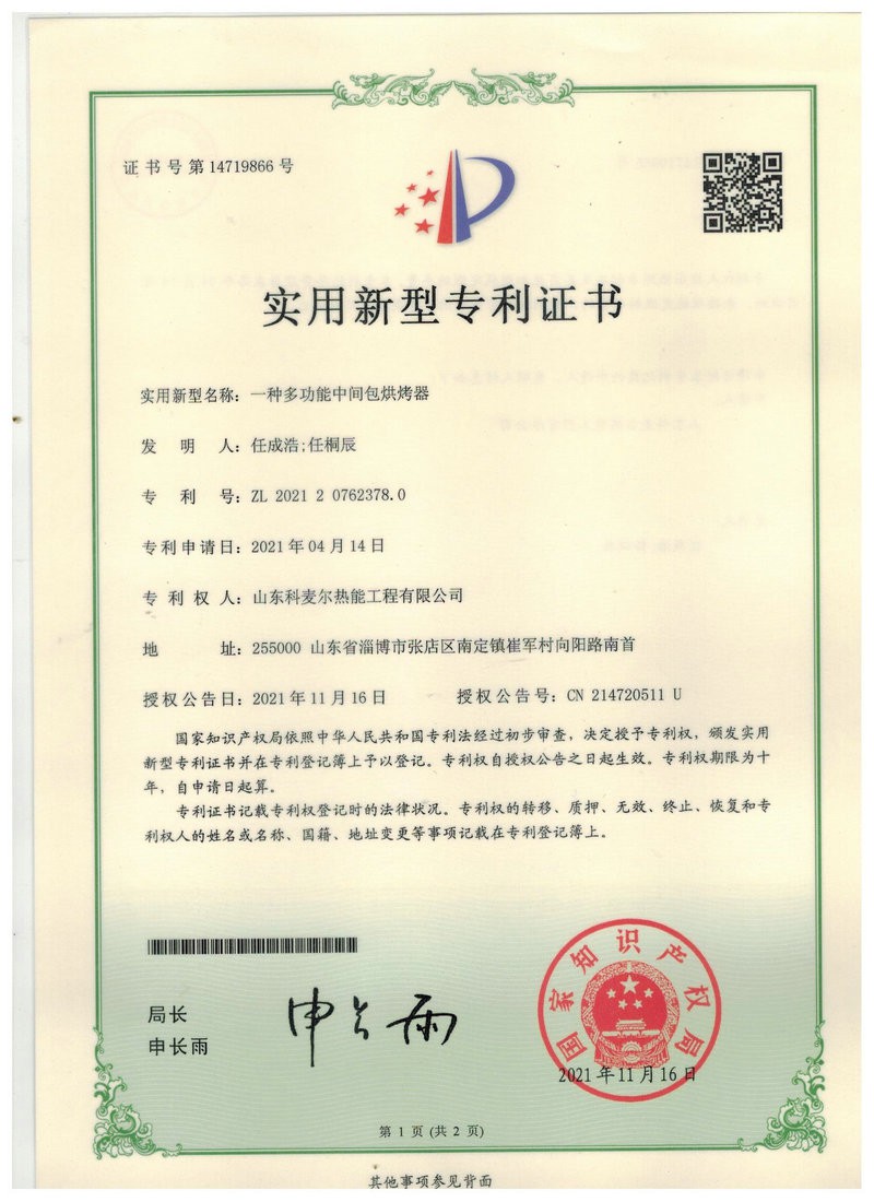 中間包烘烤器:包括燃燒器、鼓風(fēng)機(jī)、助燃風(fēng)管道系統(tǒng)和煤氣管道系統(tǒng),所述助燃風(fēng)管道系統(tǒng)一端連接鼓風(fēng)機(jī),另一端接入位于燃燒器前的煤氣管道系統(tǒng),還包括通過(guò)控制煤氣管道閥門(mén)開(kāi)閉自動(dòng)調(diào)節(jié)溫度的控制系統(tǒng),所述燃燒器為1-5個(gè)(根據(jù)膜胎尺寸確定),中間包工作層受熱均勻,易脫模節(jié)能效果明顯。